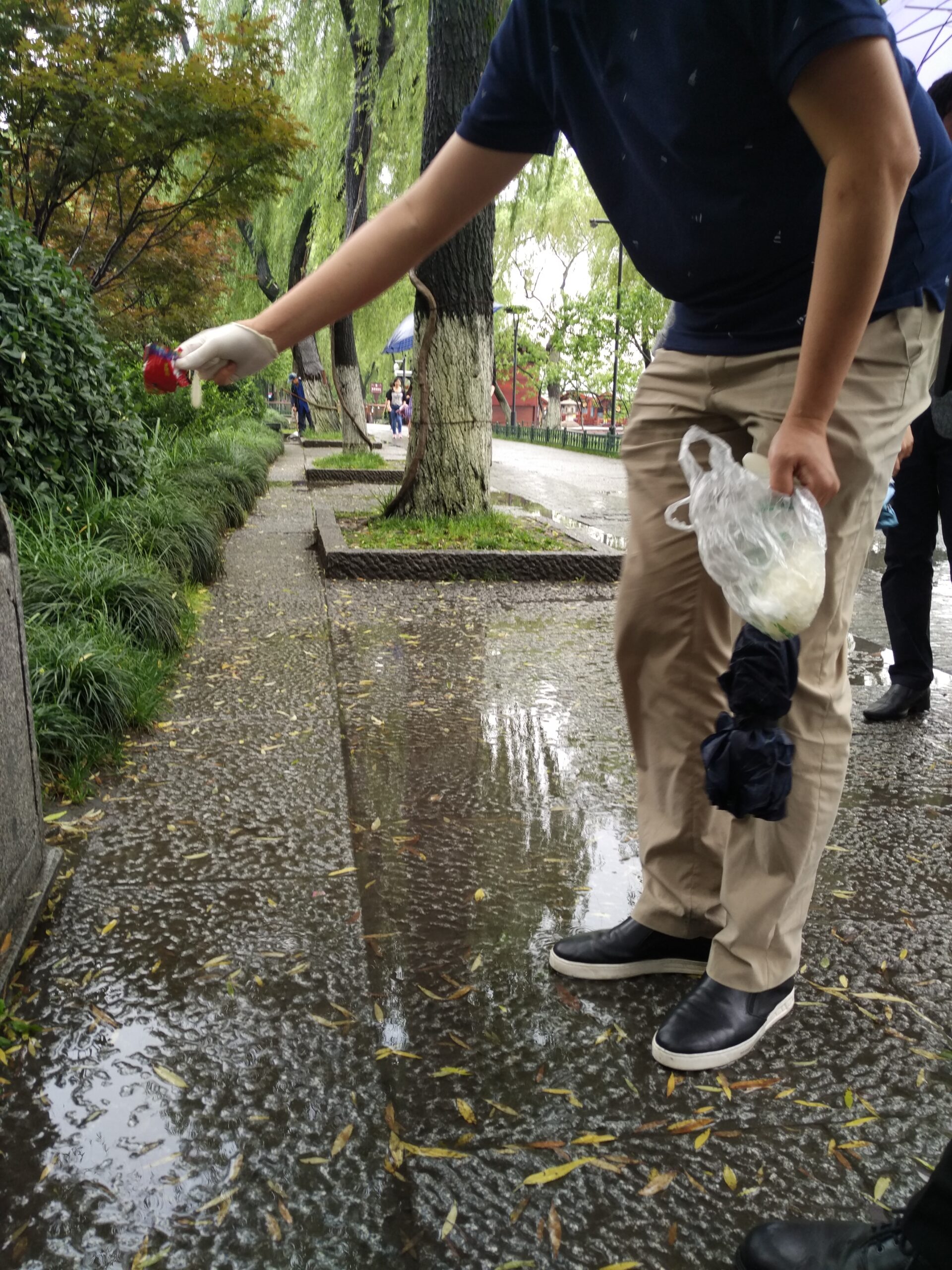 One of our first projects, in 2016; a number of club members and volunteers gathered near the West Lake, in Hangzhou, to pick litter to improve the environment in this area of outstanding natural beauty