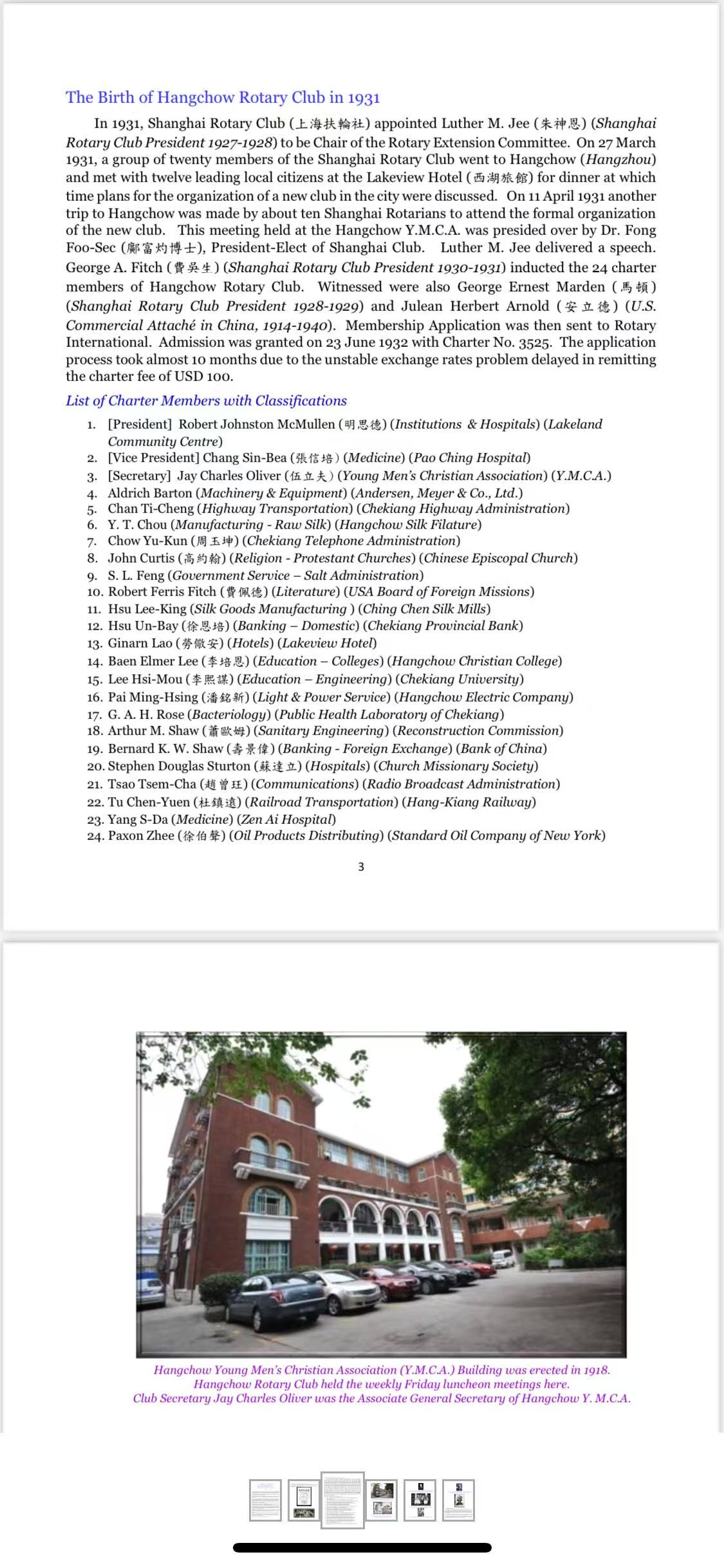 – Hangchow Rotary Club (1931) – The First Mandarin Speaking Club in History