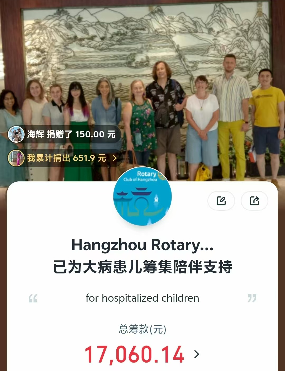 Our club supported Tencent’s Giving Days in 2018 and 2019, to support Beijing New Sunshine Charity Foundation’s Hospital School Project