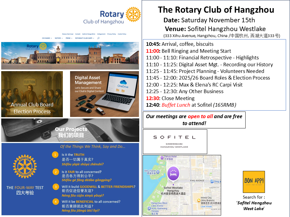RCHZ Regular Club Meeting @ Sofitel Hangzhou Westlake – Nov. 15th, 2025